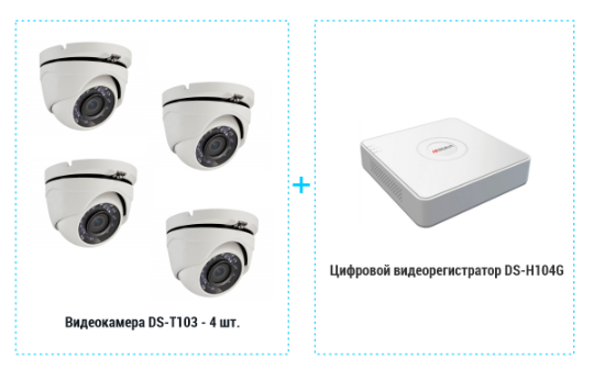 4-х канальный гибридный HD-TVI регистратор DS-H104G для аналоговых, HD-TVI и AHD камер.